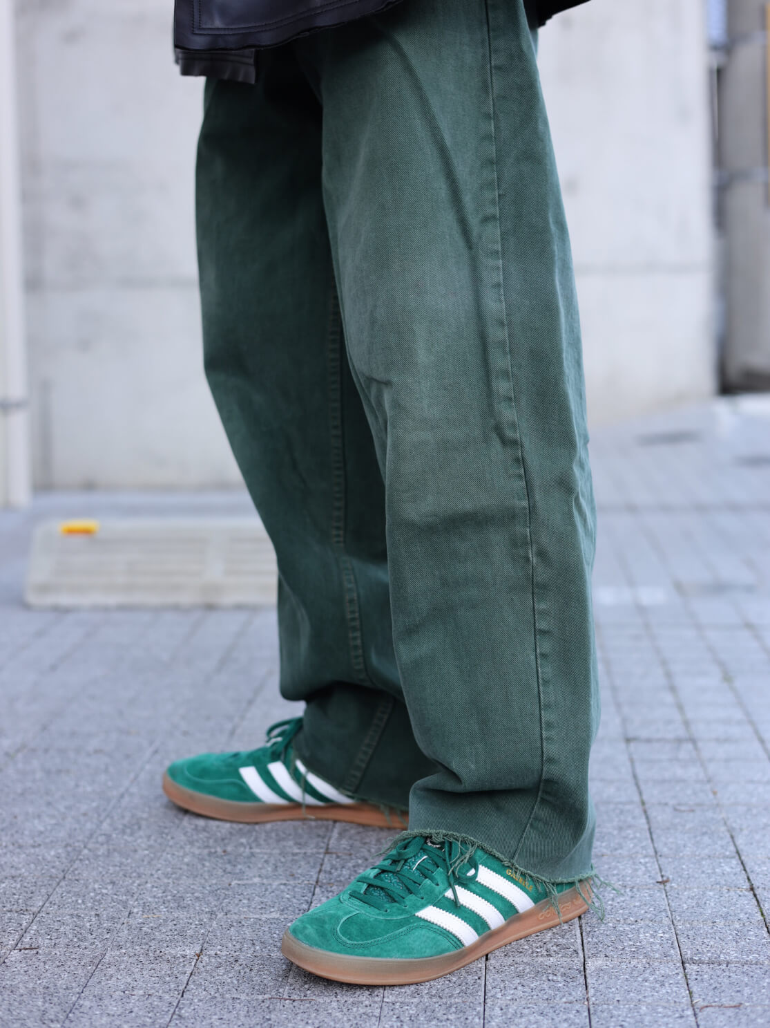 ガゼルインドアと同系色のボトムスを合わせることで、足元が浮かず、全体に統一感が出ます。
