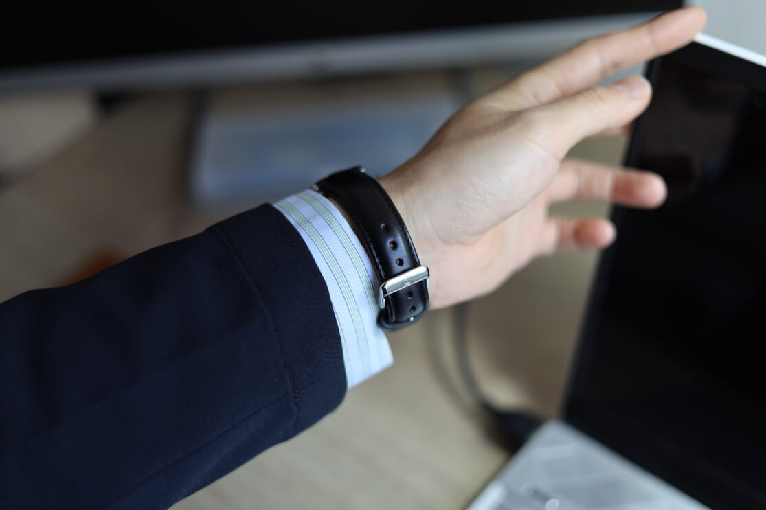 実際に腕に着けてみると、大きすぎず小さすぎず、いいバランスです。スーツの袖口からさりげなく覗いたとき、清潔感と知的さが自然に伝わる、そんな印象です。