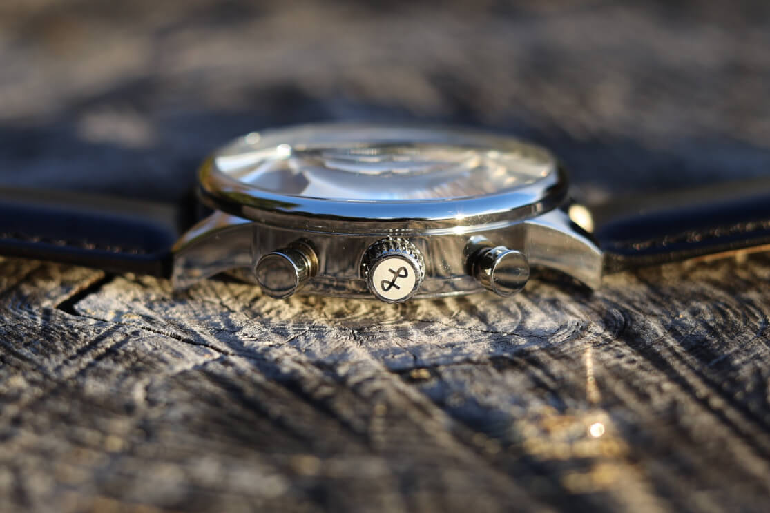 1844の魅力を一言でいうなら、クロノグラフの機能を、知的な外観に落とし込めていることです。