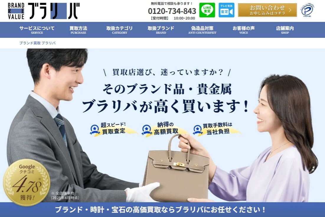 ブラリバ(BRAND REVALUE)は、バッグ・時計・宝石・貴金属などを幅広く扱っている、ブランド品買取専門店です。とはいえ、ハイブランドの買取業者はたくさんありますよね。どこも「高価買取」と書いてあるからこそ、「ホントに高いのか」「悪い評判はないのか」「実際いくらになるのか」が一番知りたいはずです。