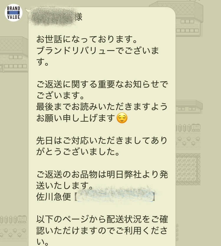 返品時は、以下のようにLINEメッセージが届きます。