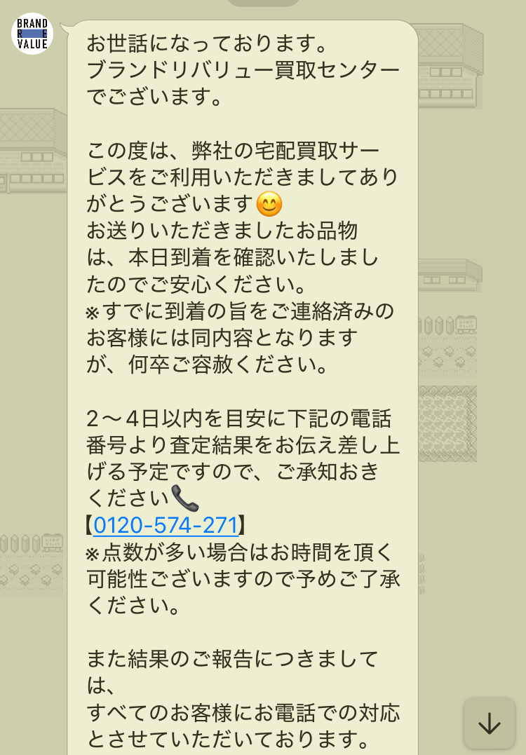 荷物が到着すると、LINEで連絡がきます。その後、査定開始です。