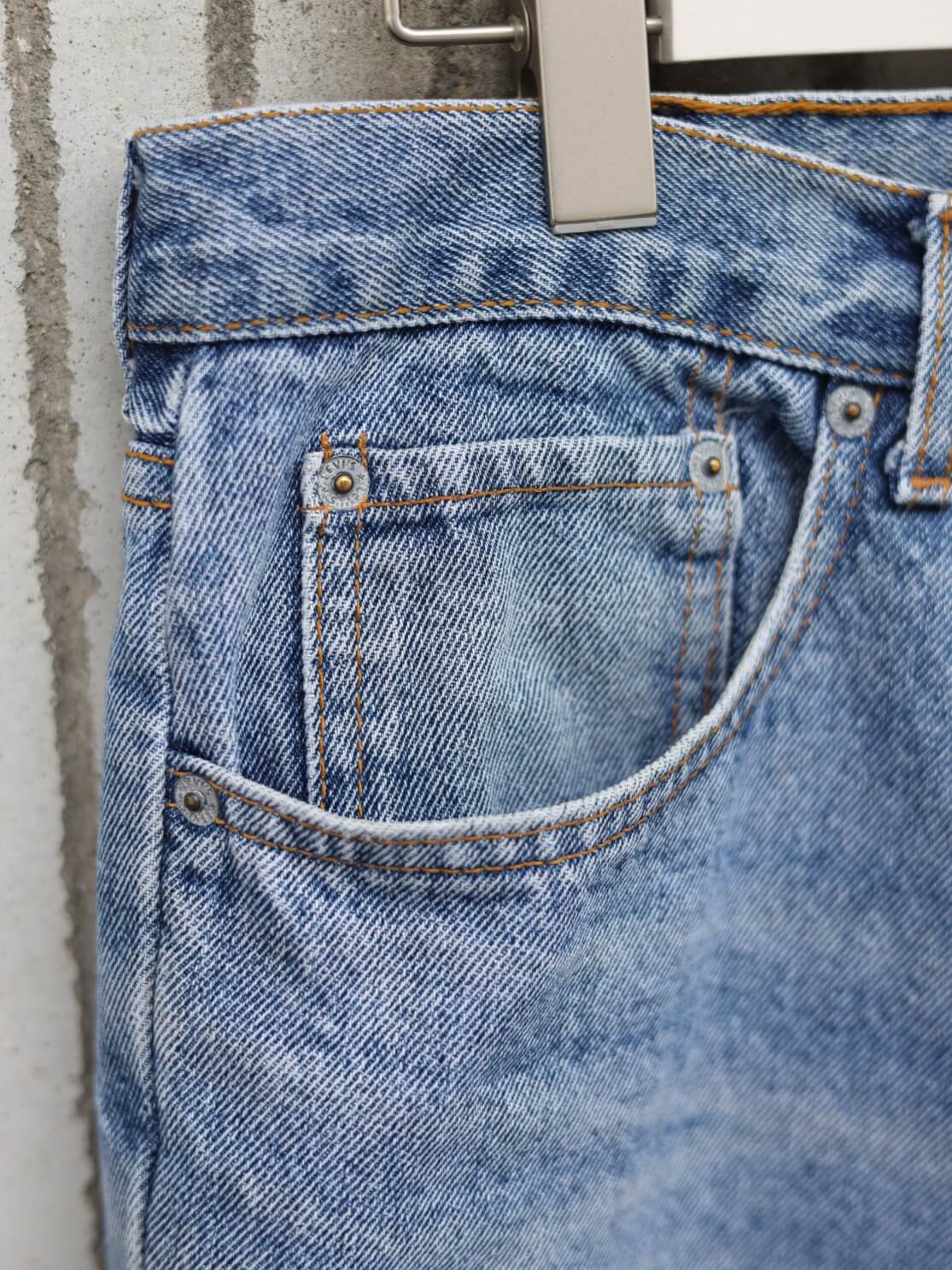 本記事で扱っているユーロリーバイスはオレンジタブ期の個体です。オレンジタブとは、1960年代後半〜1990年代にかけて展開された、若者向け・ファッション志向のラインを示す識別マーク。ポケットに付くオレンジ色のタブが、その象徴です。