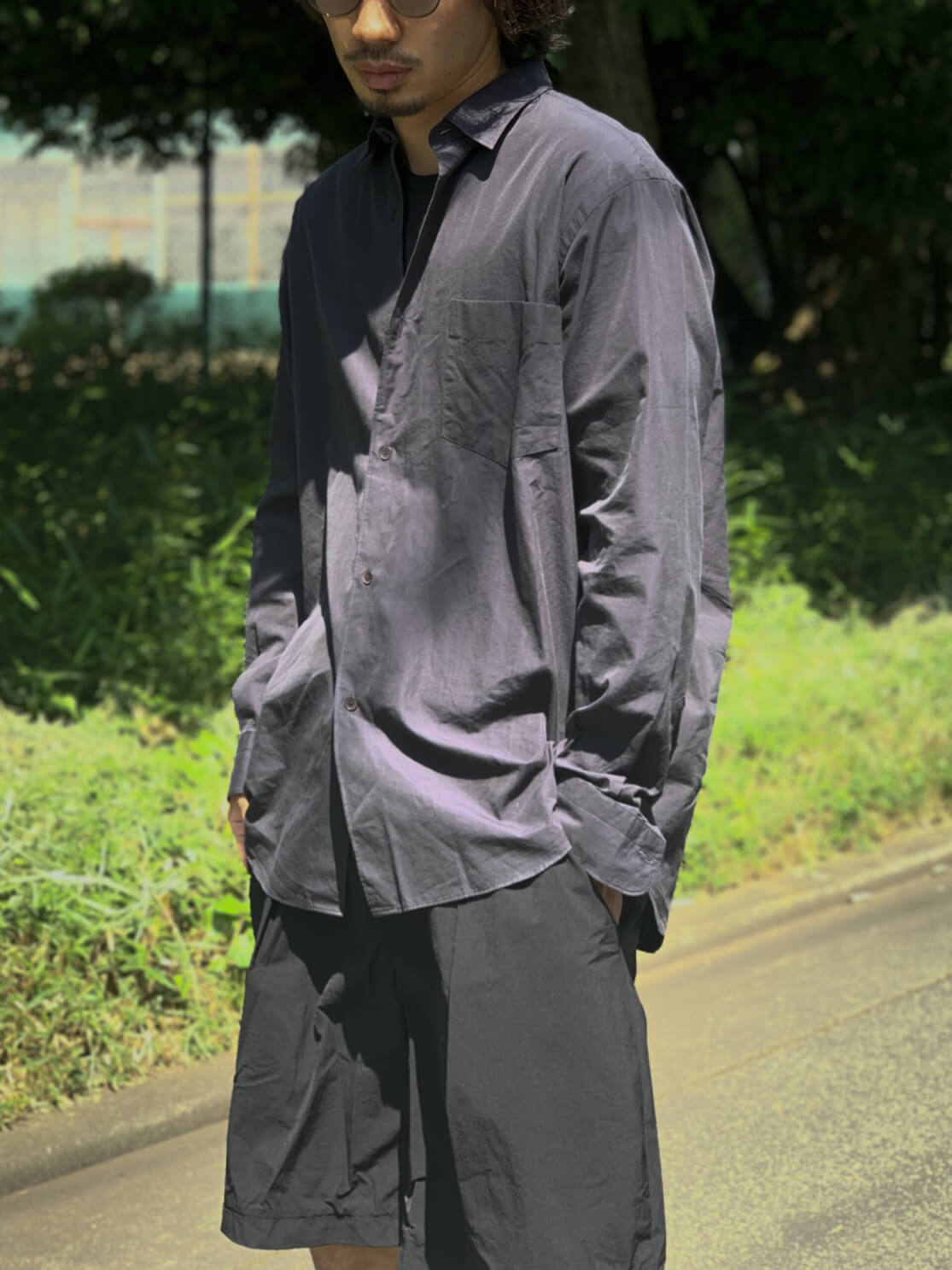 コモリシャツは、サイズ感や着こなし次第で様々な表情を見せてくれる名作アイテムです。一枚で着てもサマになるデザインで、レイヤードスタイルにもおすすめ。
