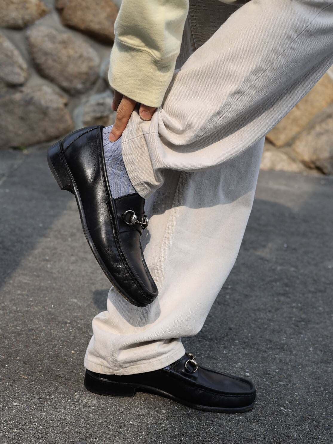 オールドグッチのビットローファー、ロトトの靴下のコーデ