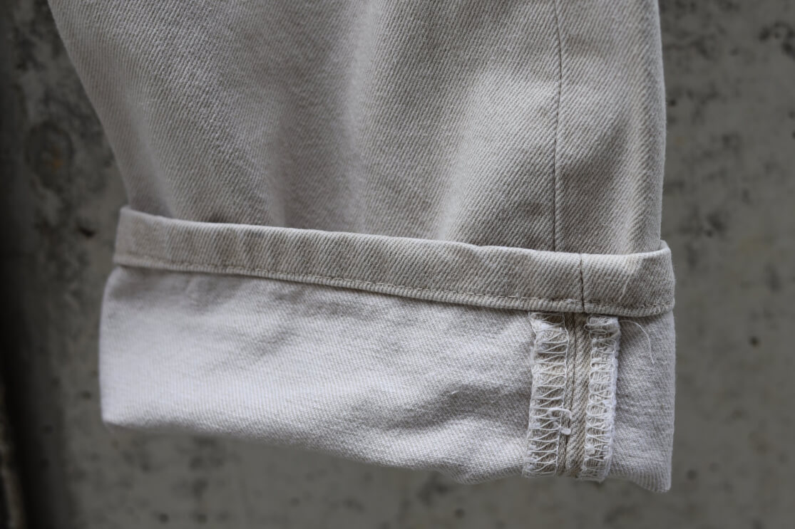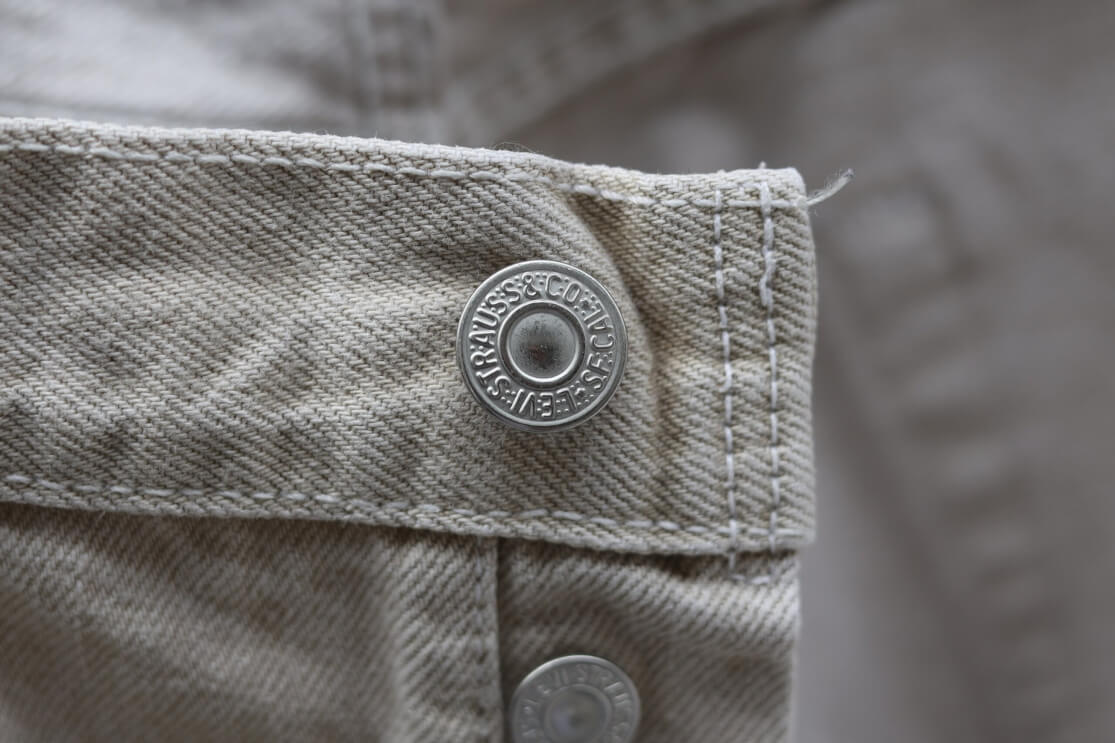ユーロリーバイス501エクリュイギリス製のロゴ ユーロリーバイス501エクリュイギリス製のボタン ユーロリーバイス501エクリュイギリス製の裾の縫製