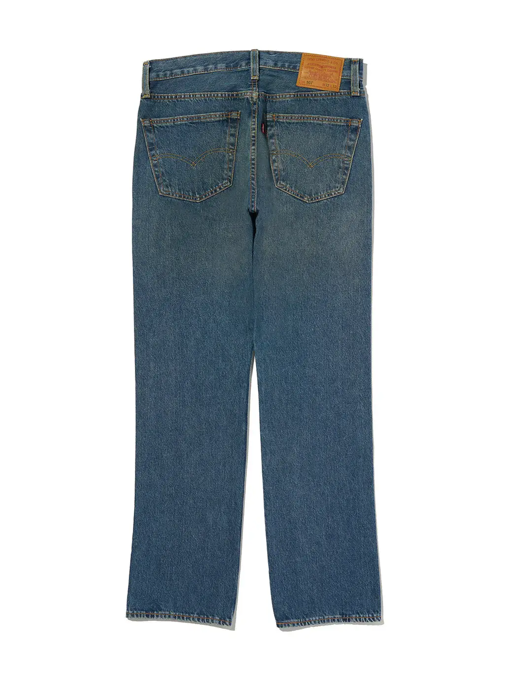 基本仕様はおなじみのボタンフライ。背面にはリーバイスらしい紙パッチが付き、5ポケットの構成も現行モデルと共通しています。