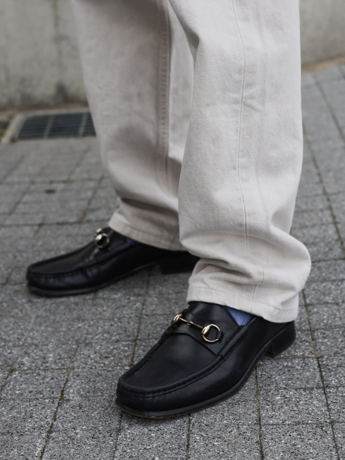 オールドグッチのビットローファー、ユーロリーバイス501のコーディネート