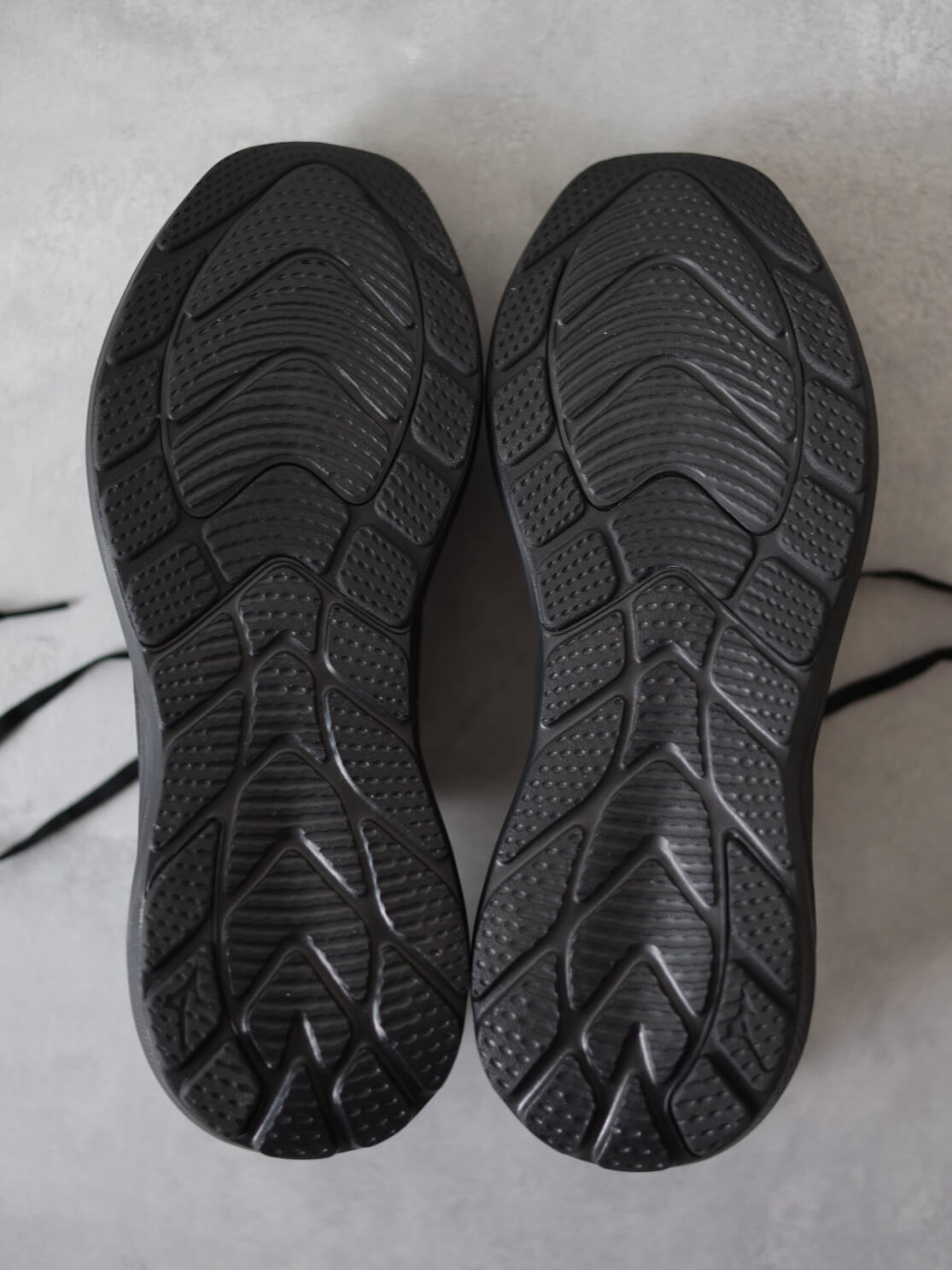 おすすめはブラック。アッパーからソールまでオールブラックで統一されていて、かなりミニマル。異素材の切り替えがない分、ゴチャつきが一切なく、野暮ったさは皆無です。